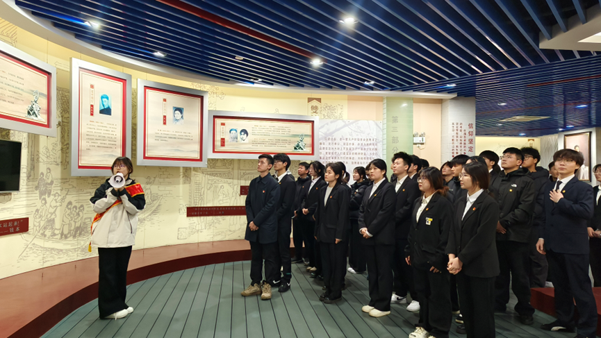 在庄严肃穆的革命烈士纪念碑前,全体师生整齐列队,向革命烈士们鞠躬默哀并敬献花圈。学生代表、sunbet申搏官方网站第六届学生会主席团成员孙宏钦在发言中号召广大化工青年学子以“史”为镜,擦亮精神铠甲,将“常州三杰”精神化作“强国有我”的行动自觉,在实现中华民族伟大复兴的航程中,书写属于新时代常州青年的壮丽诗篇。随后,师生们依次向纪念碑敬献白花,并参观常州革命烈士纪念馆。通过珍贵的历史照片、文物和影像资料,让青年学子深刻感受到革命先烈的英勇无畏。同学们纷纷表示,烈士们用生命和鲜血换来了今天的幸福生活,我们更要继承和发扬烈士们的革命精神,赓续红色血脉,在实现中华民族伟大复兴的征程中贡献青春力量。