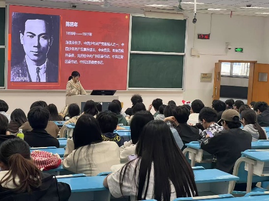 团课现场,赵老师通过丰富的历史资料、生动的故事讲述,将陈延年的一生鲜活地展现在团员青年面前。讲到陈延年在艰苦环境中坚持革命理想,在敌人酷刑下坚守信仰时,不少团员青年眼眶泛红,被革命先烈的崇高精神深深打动。互动环节中,团员们纷纷发言,分享自己的感悟。光伏2321董显业激动地说:“陈延年烈士用生命诠释了对党的忠诚和对理想的执着,作为新时代青年,我们要传承他的精神,在学习和生活中勇敢担当,为实现中华民族伟大复兴贡献自己的力量。”精细2311刘静怡表示:“陈延年为了革命事业,放弃了优越的生活,不惜牺牲自己的生命,这种无私奉献的精神让我深受触动,我们一定要珍惜今天来之不易的幸福生活。”
