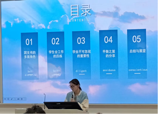 身兼光伏2331班团支书与院学生会组织部负责人双重身份的孟柳宏,围绕“平衡之策”展开分享。她将繁琐的学生会工作化作成长的阶梯,在活动策划与团队协作中锤炼沟通能力,在统筹协调中提升组织智慧。她以亲身实践证明,运用四象限法则规划事务优先级,借助番茄工作法提升效率,不仅能实现学业与工作的良性互动,更能全方位提升自己的综合素养。现场,孟柳宏毫无保留地分享了时间管理技巧,为同学们提供了实用方法论。