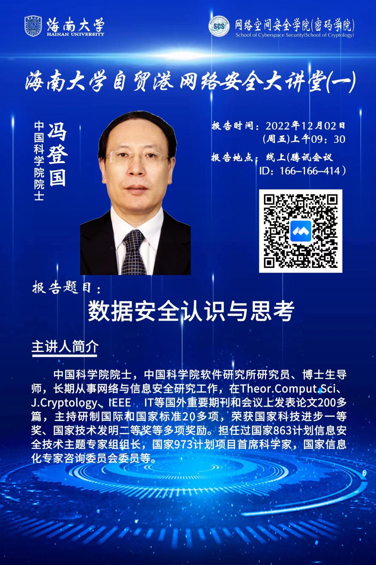 【必赢242net官网自贸港网络安全大讲堂(一)】数据安全认识与思考--冯登国