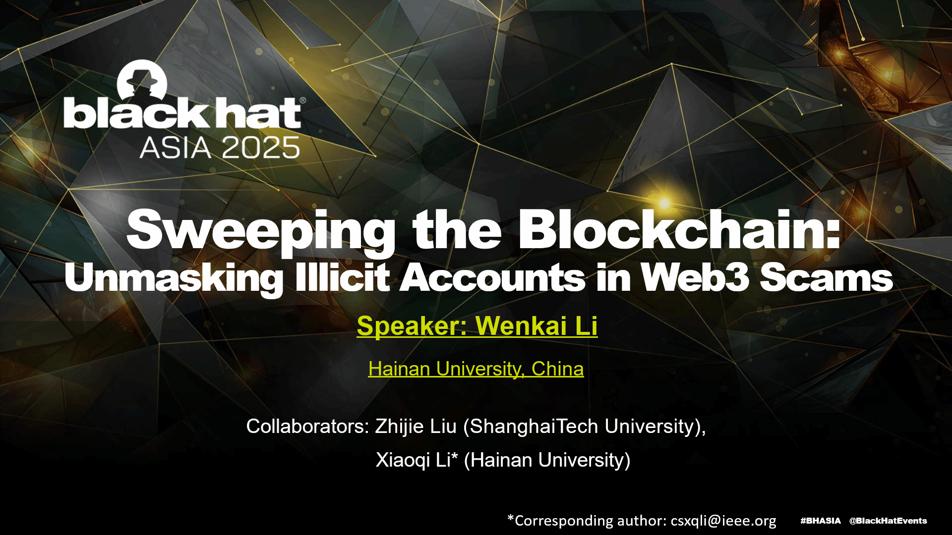 附成果官网地址:https://www.blackhat.com/asia-25/briefings/schedule/index.html#sweeping-the-blockchain-unmasking-illicit-accounts-in-web-scams-43567