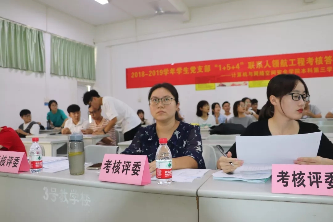 为适应新时期党建工作的要求,加强学生党员队伍建设与管理力度,进一步提高“1+5+4”领航工程党员干部的素质,努力提高工作效率,严肃组织纪律性,使学生党员“联系学生,服务学生”工作向科学化、规范化、制度化的方向迈进,更好地发挥学生党员在学习、生活、工作、成长成才中的领航作用,计算机与必赢242net官网于2019年6月21日在第三教学楼103、105、106召开计算机与必赢242net官网2018-2019学年学生党支部“1+5+4”联系人领航工程考核答辩大会。