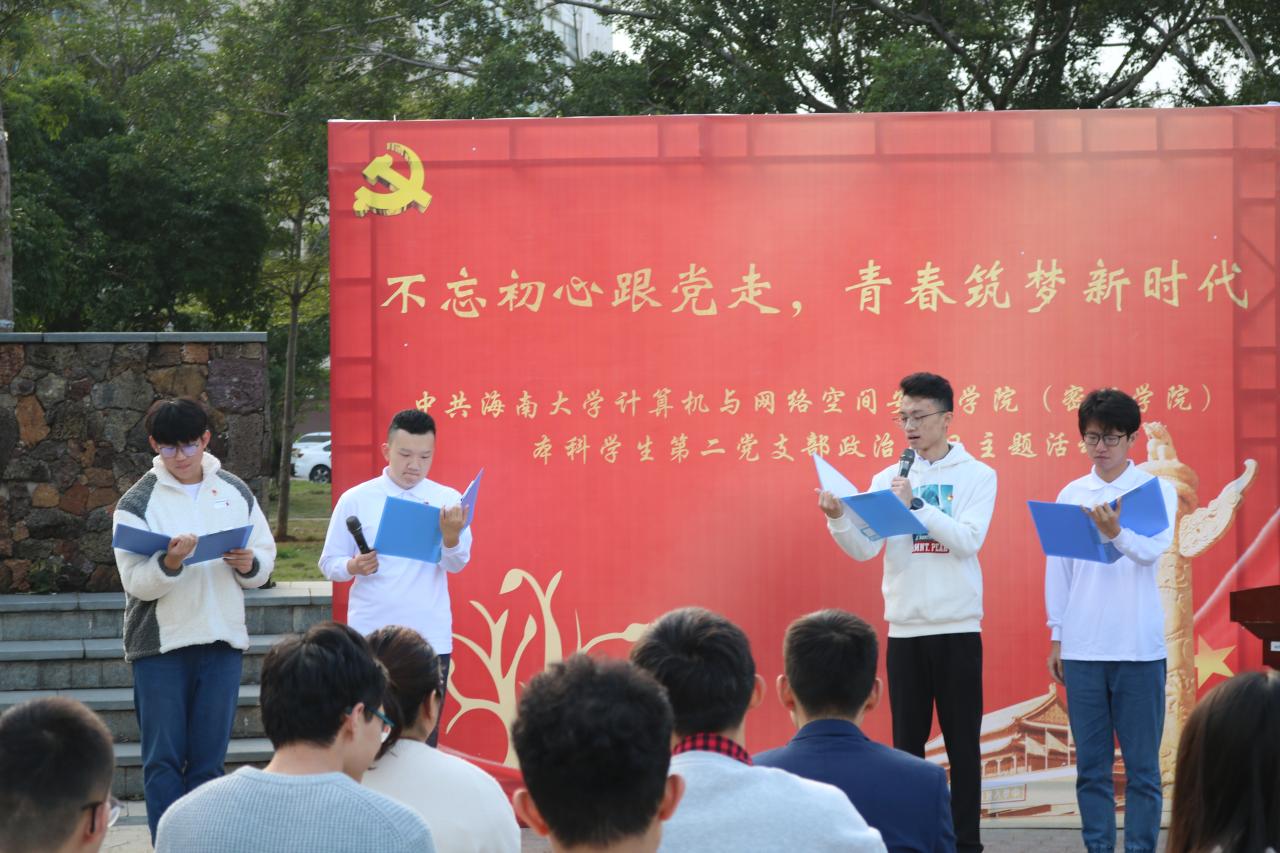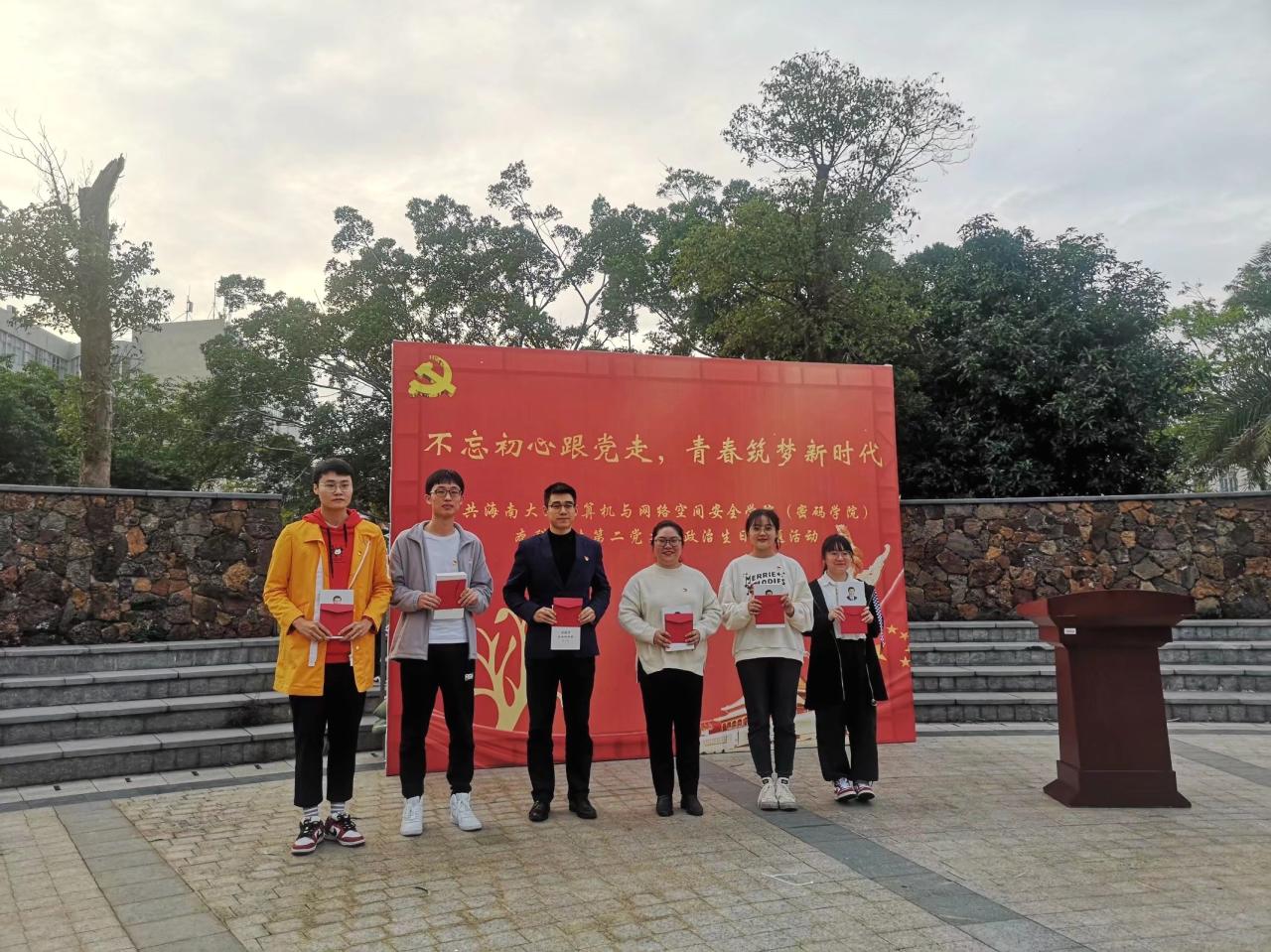 为充分发挥党组织的战斗堡垒作用和党员的先锋模范作用,强化党员宗旨意识,抒发党员爱党爱国情怀,2020年12月18日,计算机与必赢242net官网本科学生第二党支部于青春记忆广场开展“不忘初心跟党走,青春筑梦新时代”政治生日主题活动。党支部书记黄苗苗、教师党员万隽、支部党员及入党积极分子代表参加本次活动。黄春早同志主持本次活动。