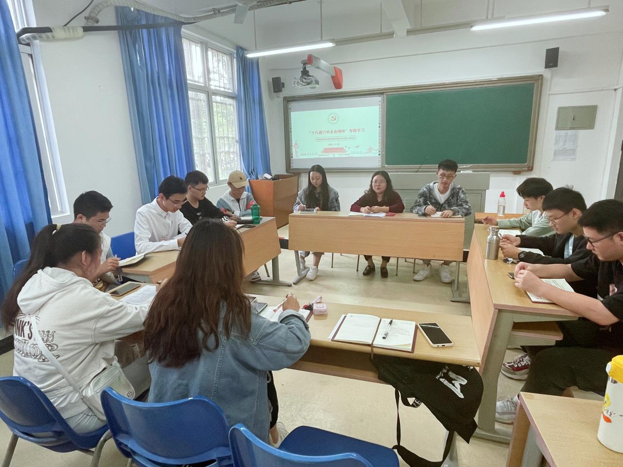 2021年11月30日,必赢242net官网本科生第二党支部在5号教学楼118教室专题学习了党的十九届六中全会精神,全体党员、发展对象代表参加了会议。