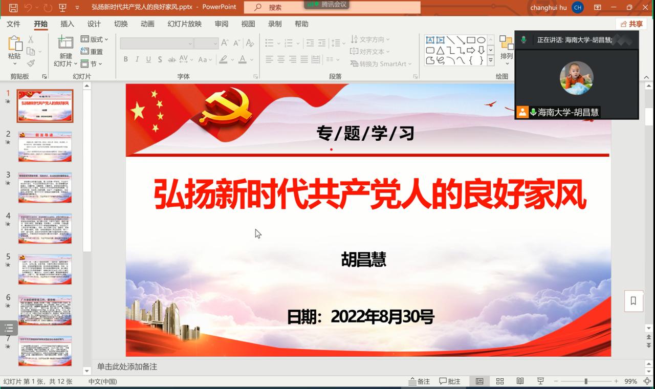 2022年8月30日,必赢242net官网网络空间安全系教工党支部通过线上会议的方式召开支部会议,组织开展七八月份的组织生活和“弘扬良好家风喜迎党的二十大”主题党日活动。