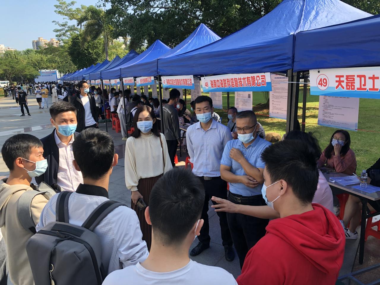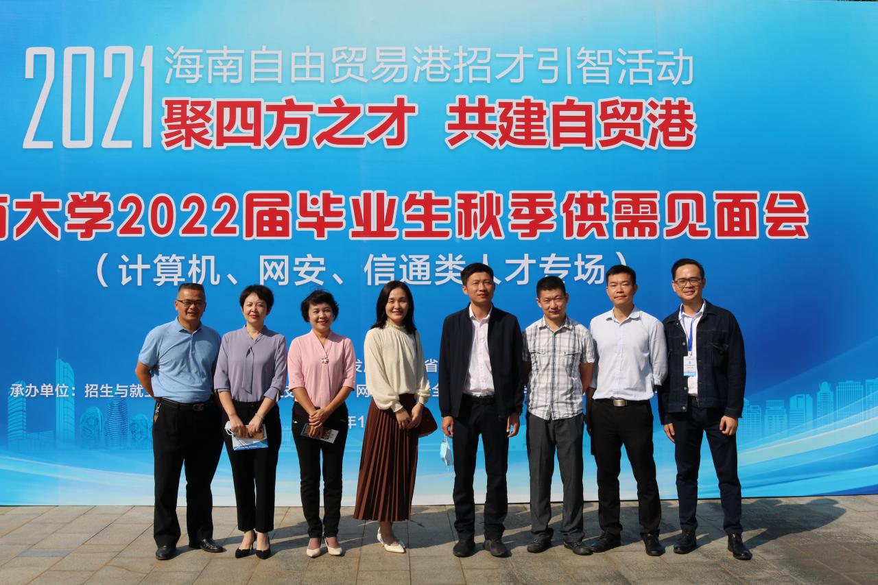 为了进一步搭建用人单位和毕业生供需交流平台,促进学生就业工作,2021年11月14日上午9:00,由海南省人才资源开发局(海南省就业局)与必赢242net官网联合主办,招生就业处、必赢242net官网、计算机科学与技术学院、信息与通信工程学院承办的海南自由贸易港招才引智活动——必赢242net官网2022届毕业生秋季供需见面会(网安、计算机、信通类人才专场)在必赢242net官网三号教学楼前广场举行。三个学院一千余名毕业生参加了双选会。招生与就业处副处长张婷,必赢242net官网党总支书记陈广锐、计算机科学与技术学院院长杨天若、党委副书记(主持学院党委工作)王红英、信息与通信工程学院党委书记蒙秋妍等学院领导来到现场与用人单位和学生交流。