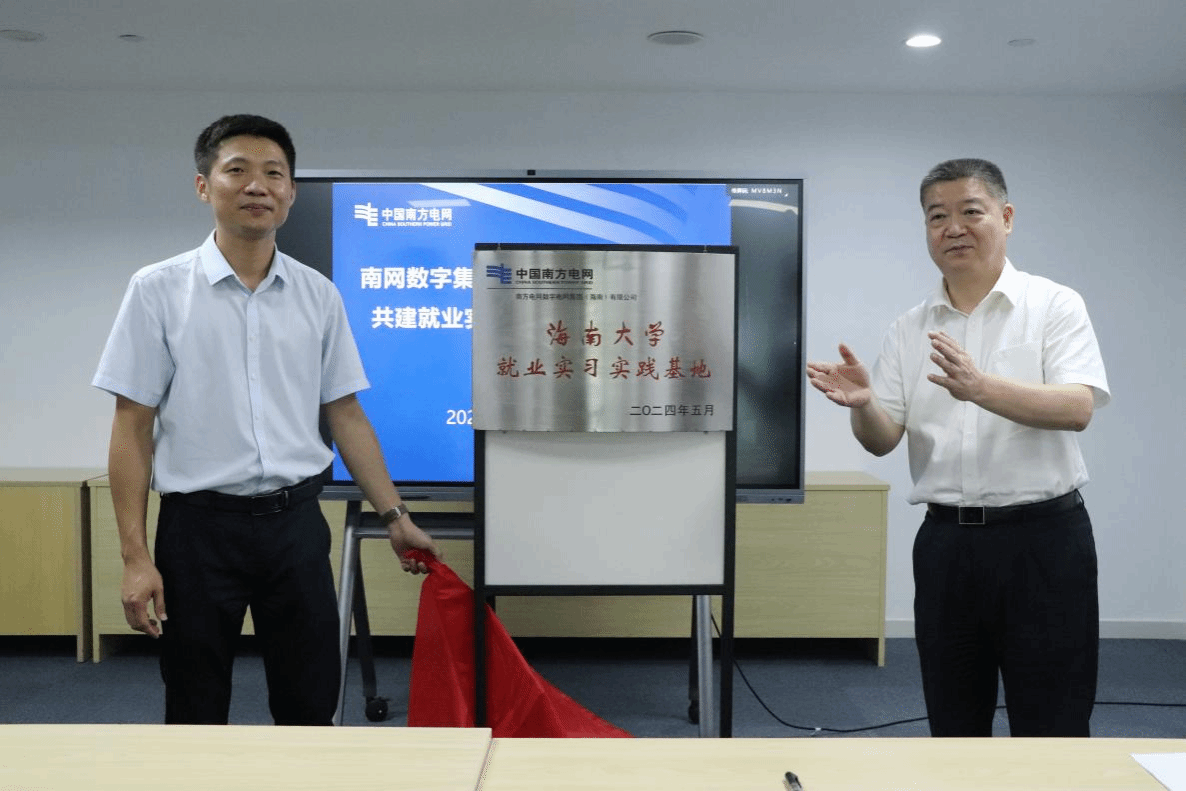 5月31日,必赢242net官网与南方电网数字电网集团(海南)有限公司举行共建就业实习实践基地签约和揭牌仪式。学院党总支书记陈广锐、副院长郭祯,南方电网数字电网集团(海南)有限公司董事长顾志东、副总经理何玮以及教师代表、首批实习学生代表等参加活动。