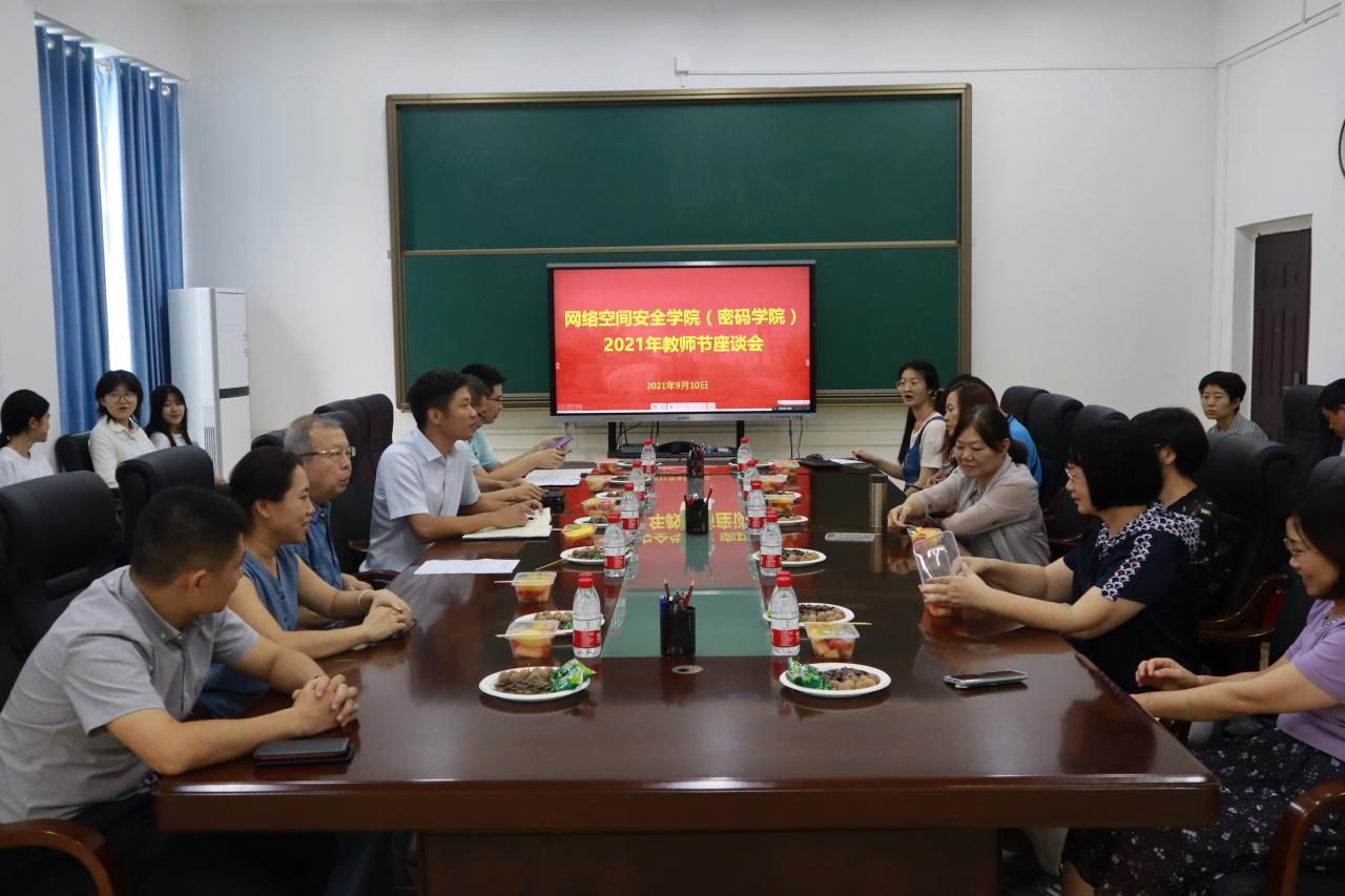 学院组织召开了庆祝教师节座谈会。会上,师生共同欢送荣休教师,为在岗30周年的教师献上了鲜花,并为新入职教职工佩戴绶带、献花。会上,曹春杰院长作了讲话,指出学院发展离不开教师,感谢全体教师为教育事业和学院发展作出的贡献;希望全体教师再接再厉,进一步加强自身建设,提升教学和科研能力,为学院人才培养、学科建设、科学研究、社会服务等方面作出更大的成绩,争创国家一流必赢242net官网和国家示范性密码学院!陈广锐书记在会上希望全体教职工牢记“为党育人、为国育才”使命,争当“有理想信念、有道德修养、有扎实情操、有仁爱之心”四有好老师;坚守师德师风,以德立身、以德施教,共同营造尊师重教、严谨治学的学院风气;秉承海大精神,团结奋进、拼搏进取,为加快推进学院发展扛起责任担当!老师们在座谈会上畅所欲言,纷纷表达了作为一名教师的光荣感、自豪感以及教书育人的责任感,并表达了对推动学院新一轮发展的坚定信心和美好祝愿!学生代表在会上发言,表达对老师们的节日祝福,感恩老师们的谆谆教诲,祝愿学院越来越好!
