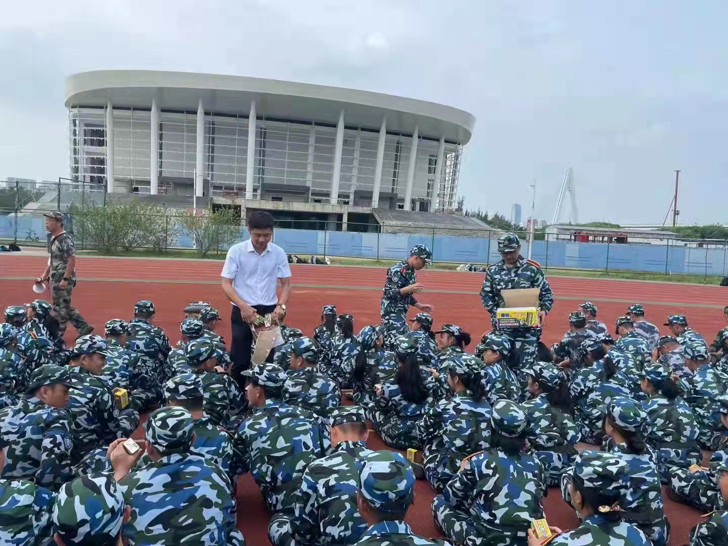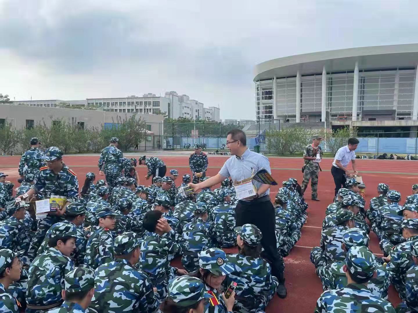 学院领导班子给新生军训发放慰问品