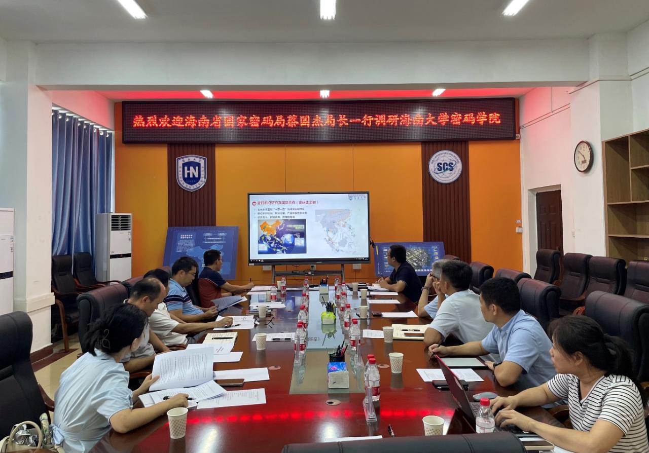 在必赢242net官网党委常委、副校长邱锡光,学院党总支书记陈广锐、执行院长曹春杰的陪同下,蔡国杰局长一行参观了必赢242net官网密码科普展厅,听取了必赢242net官网密码学院建设汇报和海南省商用密码协会成立大会筹备情况汇报。