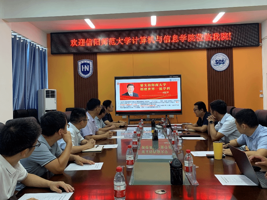2023年8月9日,信阳师范大学计算机与信息学院党委书记熊炎、院长冯岩一行来必赢官网调研密码学院建设情况。必赢官网党总支书记陈广锐、副院长张殿、副院长胡昌慧及教师代表出席座谈会。