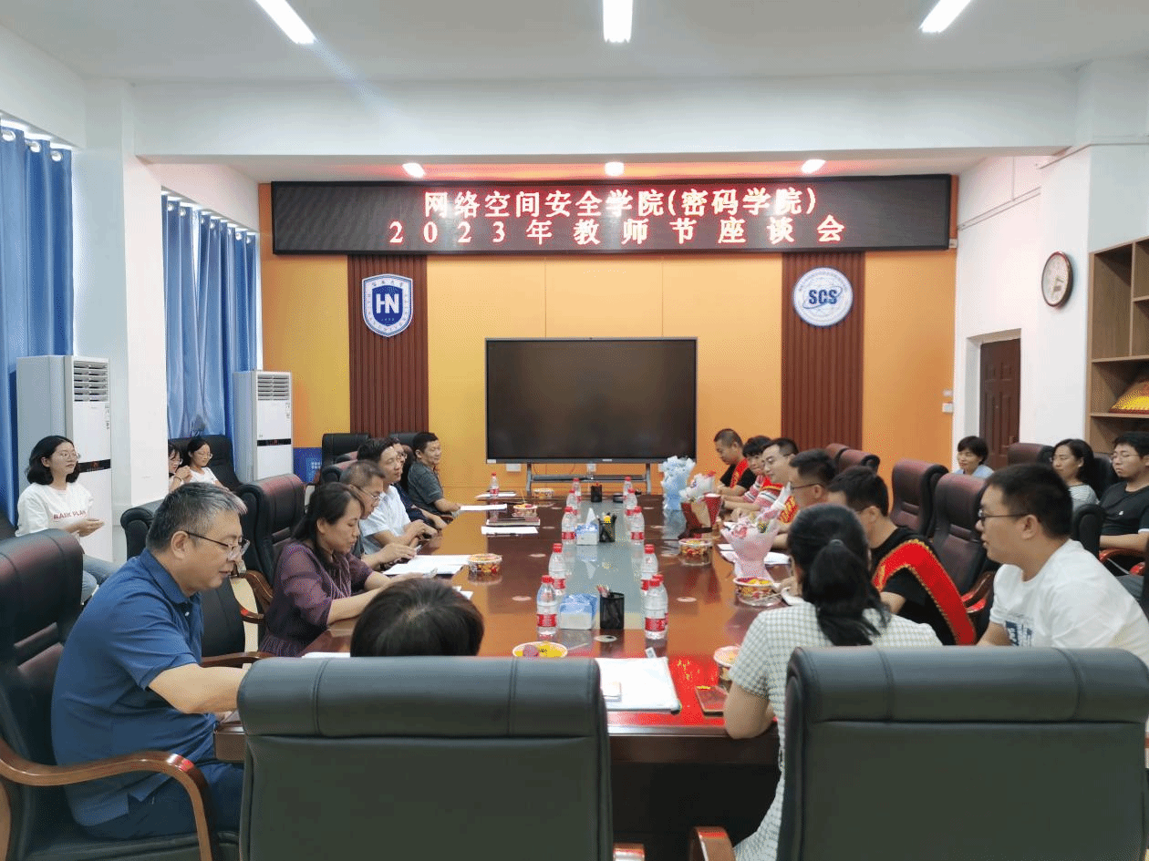 新入职教师代表邢剑副教授、教师代表张树东教授、学生代表樊雪峰同学在座谈会上分别作了发言。邢剑副教授说,加入网安大家庭后,深刻感受到了团结向上、充满朝气的学院氛围,学院的关系和同事的帮助,激励他今后努力工作、积极奉献。张树东教授说,感谢学院为他们提供了良好的条件保障,学院是一个温暖的大家庭,作为学院的一份子,将努力培养好学生,用优异的科研成果来回报学院和学校。博士生代表樊雪峰同学全体学生表达了对教师的感谢之情,感谢老师们用知识和智慧的力量培养学生,让学生能够在浓厚的学术氛围中成长。