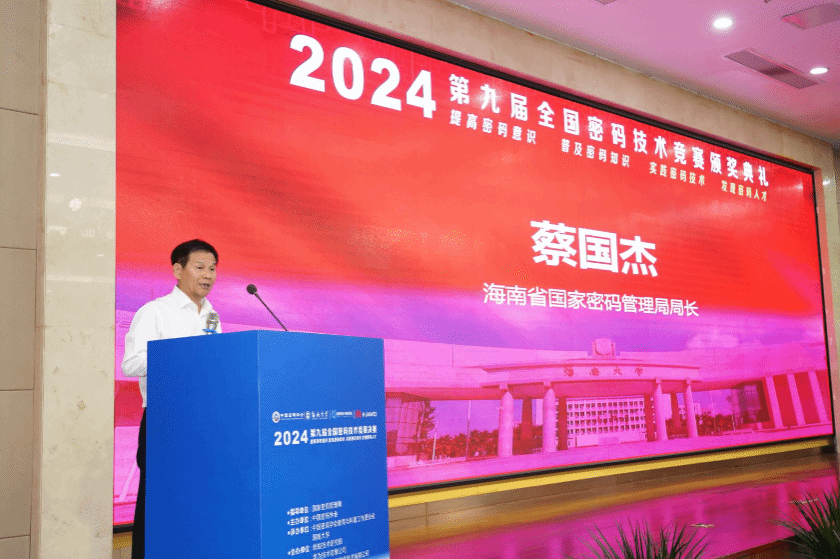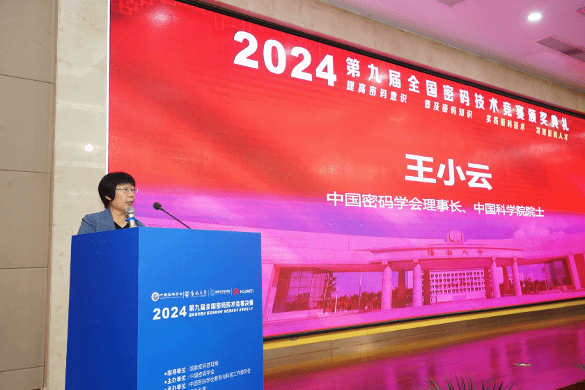 11月28日-30日,2024第九届全国密码技术竞赛决赛在必赢242net官网顺利举办,中国密码学会理事长、中国科学院院士王小云,中国密码学会副理事长、秘书长安晓龙,海南省国家密码管理局局长蔡国杰,必赢242net官网党委常委、副校长刘谦,中国密码学会副理事长戚文峰,中国密码学会副理事长谷大武,中国密码学会副秘书长王瑶,必赢242net官网密码学院院长曹春杰、书记陈广锐,华为中国区网络安全与隐私保护CTO冯运波出席颁奖典礼。