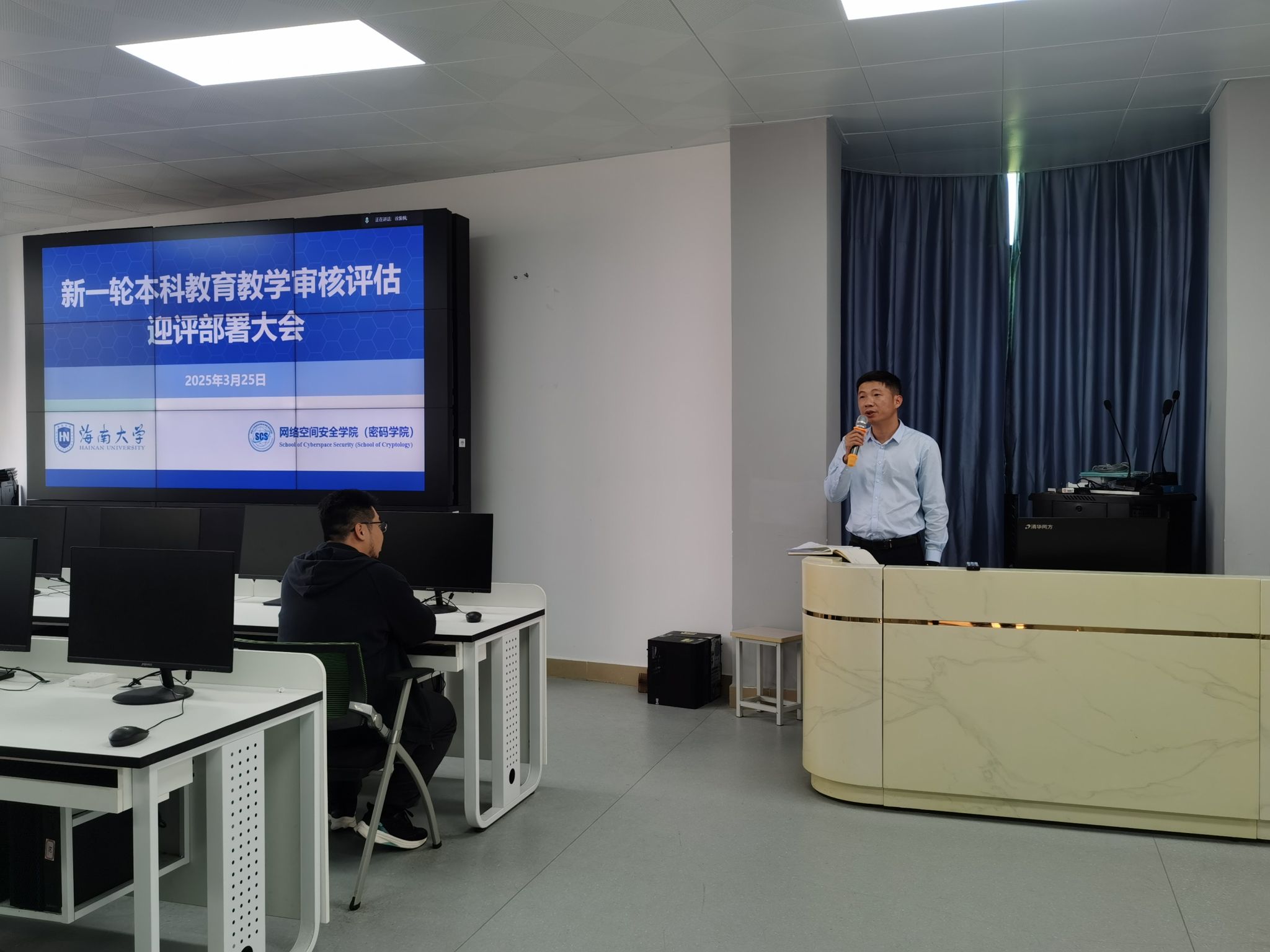 陈广锐书记讲话强调,要统一思想、提高认识,准确把握新一轮本科教育教学审核评估的重要意义,全院教职工要把思想和行动统一到学校迎评促建工作总体要求上来。要对标对表、明确分工,高质量完成迎评促建各项任务,全体教职工要做到审核评估知识应知应会,对照12项工作任务和细化分工,对本科教育教学工作进行全面体检,开展自查自检、促改促强。要抓住契机、持续改进,推动学院本科教育教育工作再上新台阶,全院教职工要以迎评为契机,进一步夯实人才培养中心地位和本科教育教学核心地位,持续提升人才培养质量和教育教学水平。