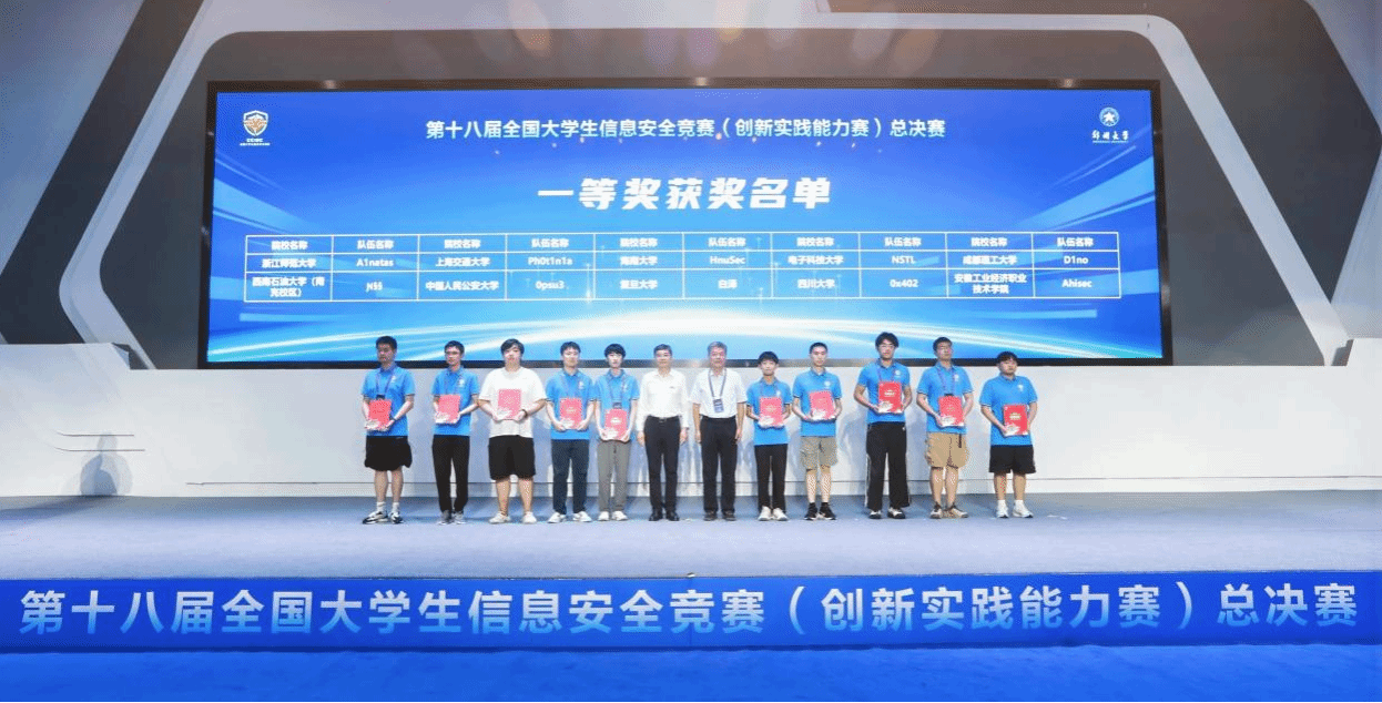 2025年7月19日至20日,由教育部高等学校网络空间安全专业教学指导委员会主办,郑州大学、郑州高新技术产业开发区管理委员会承办的第十八届全国大学生信息安全竞赛(创新实践能力赛)总决赛在河南郑州举行。必赢242net官网的HnuSec战队(高贝克、杨奕亮、张庆晗、陈颂智)在本次比赛中荣获国家级一等奖,指导教师徐紫枫获“优秀指导教师”称号,在该项赛事中实现零的突破,创必赢官网历年最好成绩!