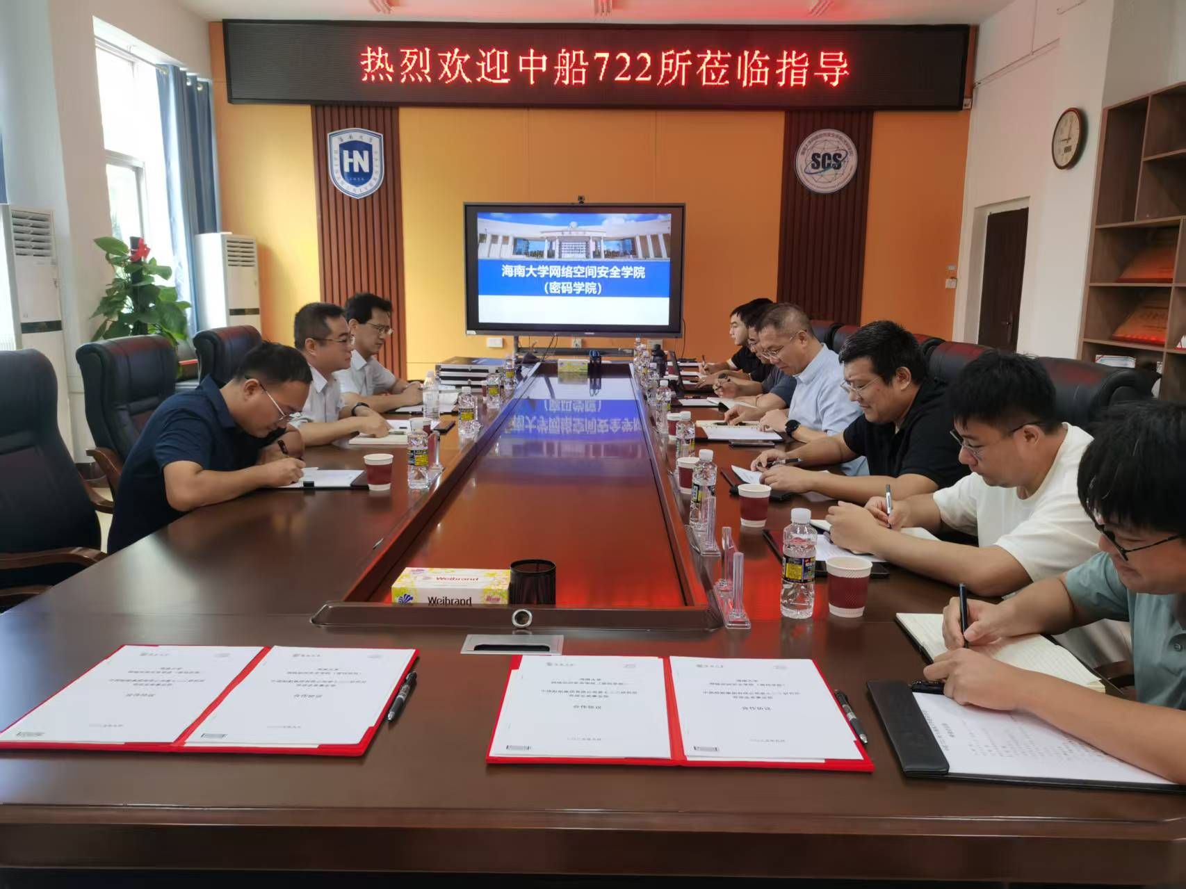 2025年9月2日上午,中国船舶集团有限公司第七二二研究所(以下简称“中船722所”)与必赢242net官网密码学院合作座谈会在学院313会议室召开。中船722所党政业务事业部主任李杨、副总助理陈义涛及技术专家吴涵,必赢242net官网密码学院院长曹春杰、副院长胡昌慧、郭渊博,及多位骨干教师共同出席,会议由曹春杰院长主持。